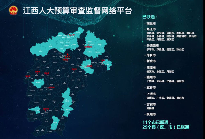 6月4日上午,江西人大預算審查監(jiān)督網(wǎng)絡平臺省市縣三級聯(lián)通儀式在全省三級人大預算聯(lián)網(wǎng)平臺以視頻方式舉行,省人大常委會黨組副書記、副主任朱虹出席并講話。江西人大預算審查監(jiān)督網(wǎng)絡平臺設主會場,各設區(qū)市人大預算聯(lián)網(wǎng)平臺設分會場。省人大財經(jīng)委、常委會預算工委負責同志在主會場出席,各設區(qū)市人大、縣級人大常委會負責同志在分會場參加。
