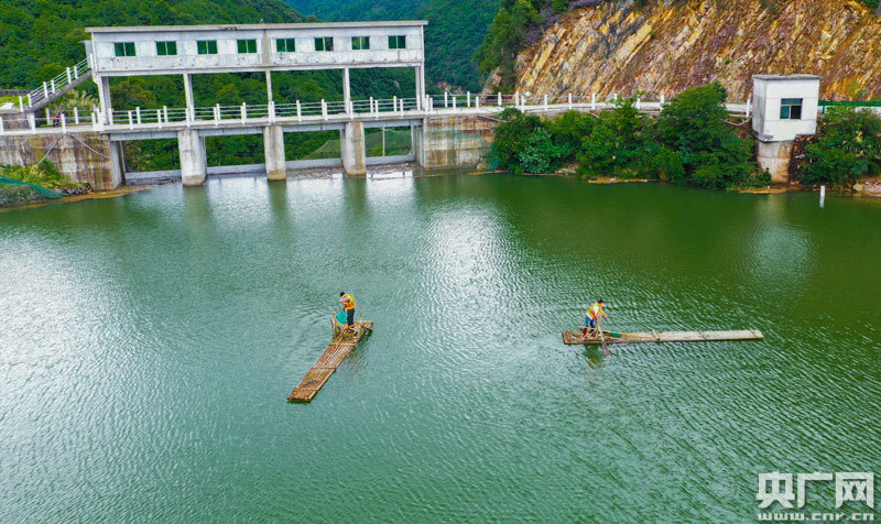 6月8日,泰和縣洞口水庫組織人員打撈清理枯枝、泡沫等水面漂浮物(央廣網(wǎng)發(fā) 通訊員司馬天民 攝)