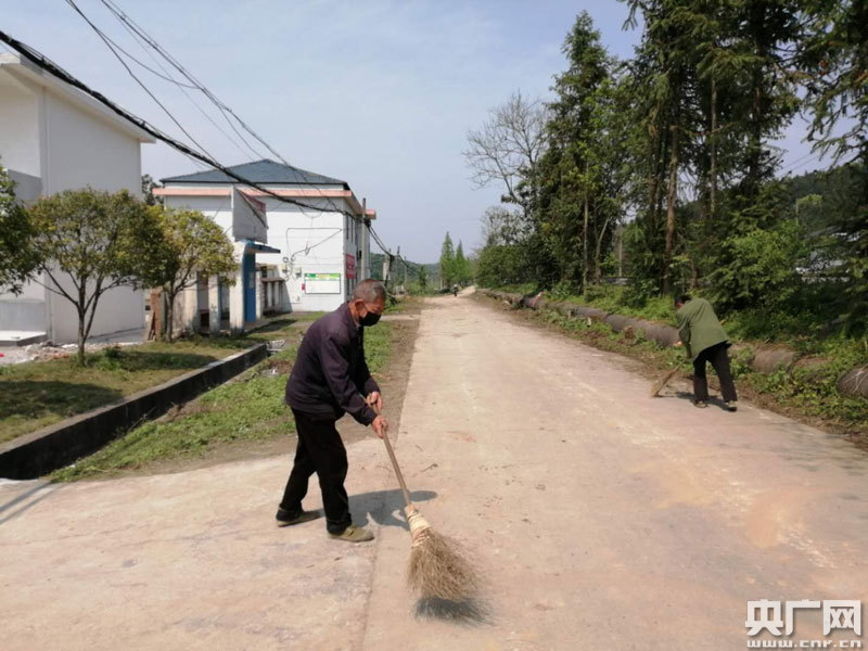 彭小平在村莊內(nèi)打掃衛(wèi)生