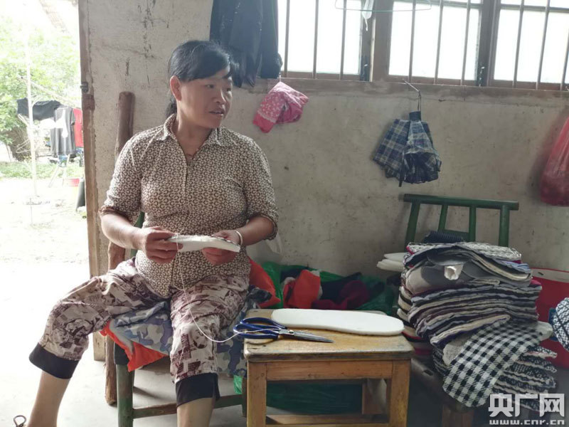 看到丈夫如此辛苦,妻子歐陽曉蘭也不閑著,雖然她患有小兒麻痹癥,行動不便,但她依舊每天在家里干著“后勤員”的工作,做飯、洗衣、打掃衛(wèi)生,家庭的瑣事在她的處理下井井有條,每月曉康驛站村委干部去他家打分時,都能欣喜的發(fā)現(xiàn)他家房前屋后的衛(wèi)生一直保持良好,她做的這些只為讓彭小平在外做事的時候沒有后顧之憂。在閑暇的時候,歐陽曉蘭還會做手工拖鞋以貼補家用。