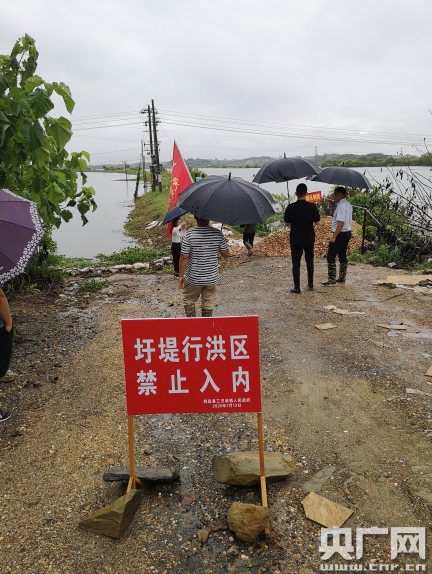 進(jìn)洪后的左橋圩堤(中央廣播電視總臺央廣記者 謝元森 攝)