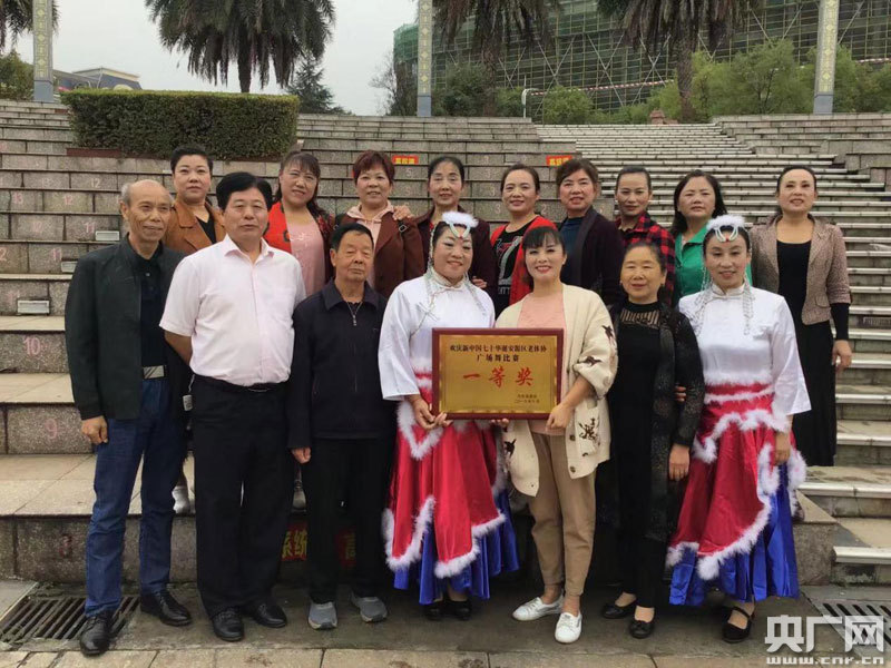 楊啟菊組織老年人參加文體活動