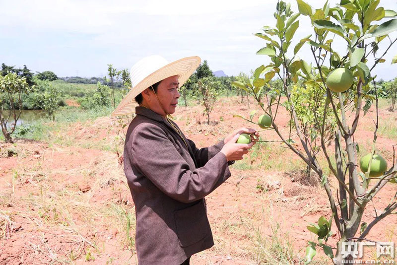 “我在這里工作每個(gè)月工資有兩千多,到了年底還有分紅,收入穩(wěn)定了,生活也越過越好了!必毨羿u奀仙邊剪枝邊說。別看這簡(jiǎn)單的粗活,干起來卻有很多講究。在培育前期,每一棵樹上培育的柚子都有數(shù)量要求,修剪多余的柚子才能確保來年產(chǎn)量更高。