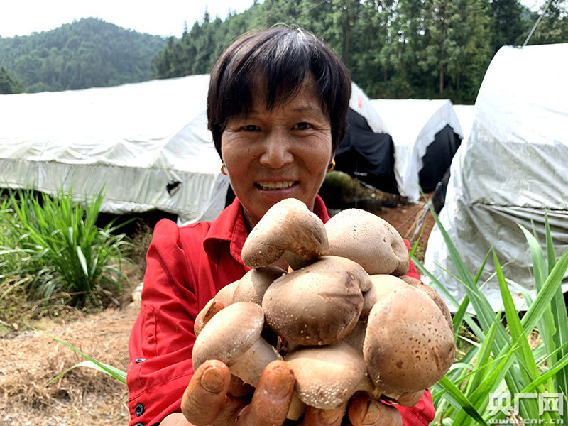 農(nóng)戶手捧剛剛采摘的夏菇(央廣網(wǎng)發(fā) 通訊員龍禮香 攝)
