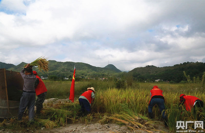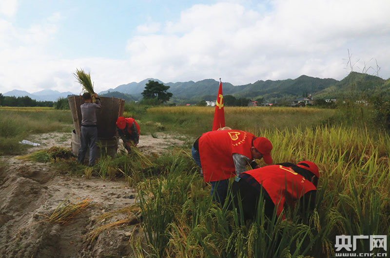 紅色連心服務(wù)隊深入田間收割(央廣網(wǎng)發(fā) 通訊員供圖)