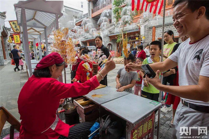 “這里改造成宮殿一樣,太有感覺了!”市民王女士開心地說,“早就聽說南正街重新改造了,趁著假期就帶著家人一起出來(lái)玩一下,非常棒!這個(gè)糖畫很精美,女兒特愛吃!