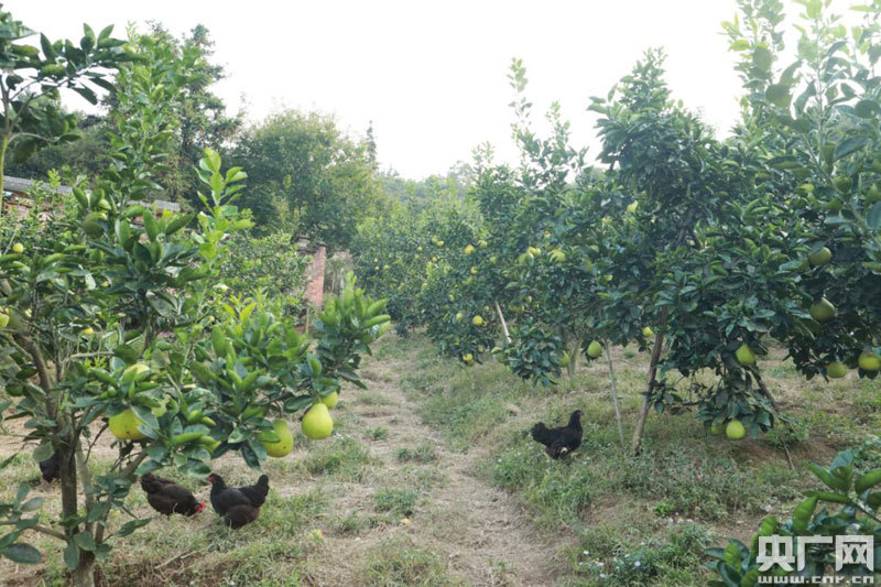 譚中華的果園里掛滿了柚子(央廣網(wǎng)發(fā) 通訊員供圖)