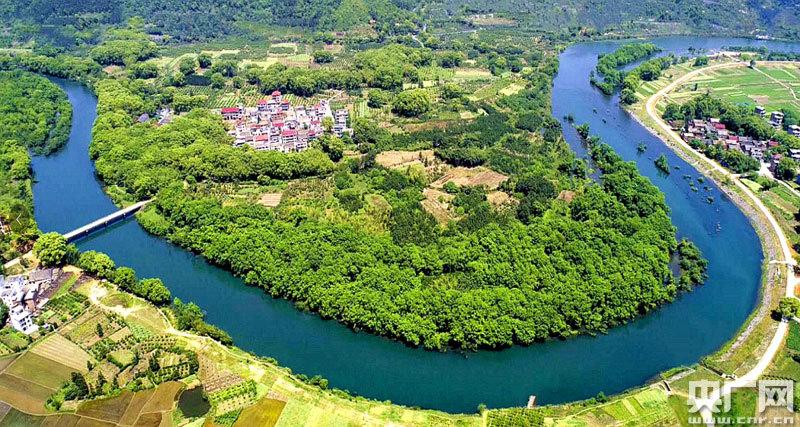穿村而過的石溪灣如玉帶般,一幅江南水鄉(xiāng)的美麗畫卷徐徐展開(央廣網(wǎng)發(fā) 通訊員供圖)
