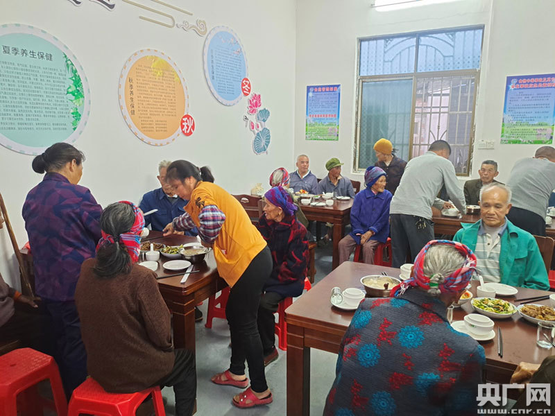 老人們在當逕村居家養(yǎng)老服務中心用餐(央廣網(wǎng)發(fā) 通訊員陳健芬 攝)