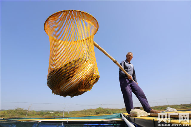 安?h和誠(chéng)畜牧有限公司員工藍(lán)宗招在捕撈倒刺鲃魚(yú)。(央廣網(wǎng)發(fā) 通訊員劉麗強(qiáng)攝影)