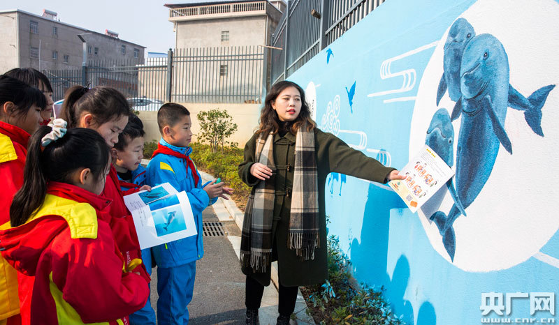 江豚保護(hù)志愿者為學(xué)生科普江豚知識(央廣網(wǎng)發(fā) 通訊員傅建斌 攝)