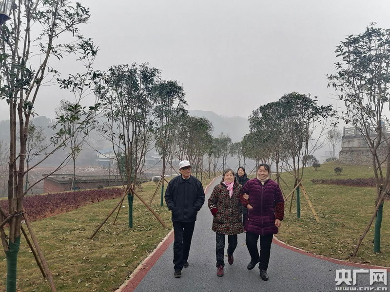 楊嘉峰與鄰居漫步在社區(qū)新廣場上(央廣網(wǎng)發(fā) 通訊員供圖)