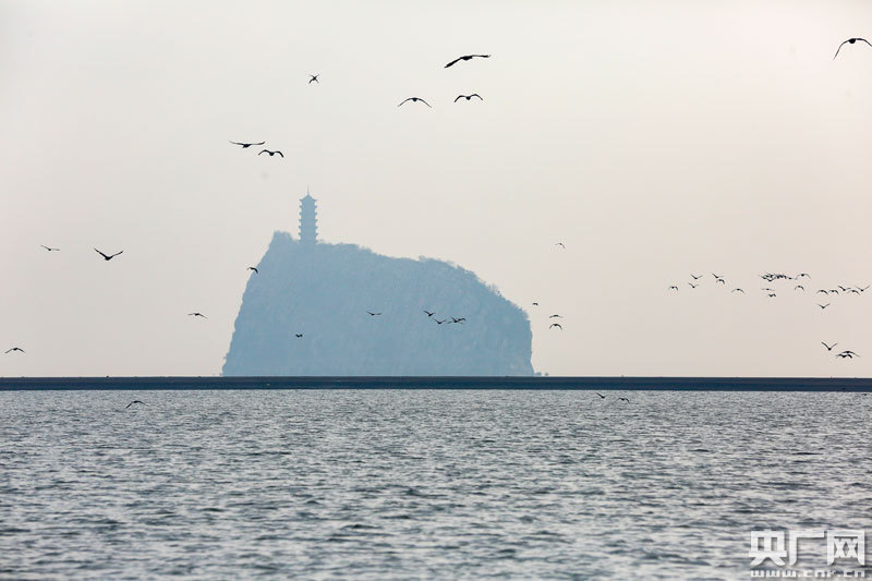 央廣網(wǎng)湖口1月27日消息(記者謝元森 通訊員李學(xué)華)時值寒冬,位于江西鄱陽湖的湖口縣鞋山風(fēng)景區(qū),前來越冬的候鳥不計其數(shù)。以魚蝦為食的候鳥棲息在島嶼上,糞便盡染樹木和懸崖,宛如“雪山”一般。從高空俯瞰,只有島嶼的東南面是一片雪白,西北面卻仍然是樹林和懸崖原有的顏色。