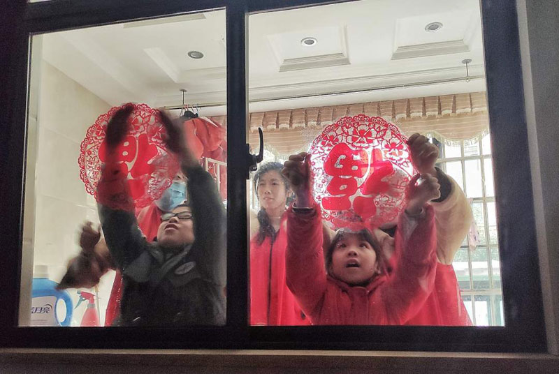 “陳老,我們來陪您過小年了!”聽到敲門聲,76歲的陳柒根趕緊將大家迎了進(jìn)來。工會(huì)“娘家人”來了,志愿者“娘家人”來了,社區(qū)“娘家人”也來了。大家?guī)е、油、紅圍巾、春聯(lián)、防疫物資等年貨來到了陳老家中。貼窗花、貼春聯(lián)、端上年夜飯……頓時(shí),老人家中熱鬧了起來,充滿新春的喜慶味。