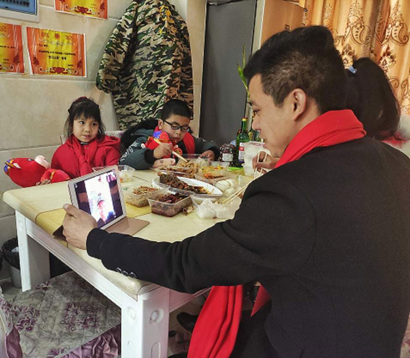 縱使相隔千萬里,親情、年味不缺席。尹文松是渝洲大橋一家汽車服務(wù)店的員工,來新余工作已有12年。過去,每年春節(jié)回吉安過年是尹文松一家不變的傳統(tǒng)。尹文松告訴記者,首次在新余過年并沒有感到不習(xí)慣。“工會(huì)想得太周到了,這個(gè)年,相信我們過得跟老家一樣有味道!睆纳鐓^(qū)工作人員手里接過保溫袋裝著的年夜飯,尹文松笑容燦爛地說。據(jù)了解,尹文松的父母在浙江務(wù)工,根據(jù)疫情防控的需要,今年春節(jié)也選擇“就地過年”。小年夜里,尹文松一家一邊吃著年夜飯,一邊同700公里之外的父母視頻連線,祖孫三代在云端上團(tuán)聚。