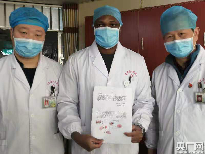央廣網(wǎng)南昌1月29日消息(記者李竟成 通訊員周勇)“我鄭重向醫(yī)院提出請求,申請加入醫(yī)院組織的春節(jié)期間抗擊新型冠狀病毒肺炎的應(yīng)急隊伍,學(xué)習(xí)白求恩精神,同時志愿堅守在抗擊病毒的第一線,為贏得抗擊病毒戰(zhàn)斗的勝利,保衛(wèi)中國人民群眾生命健康安全,貢獻(xiàn)自己的一份力量!”1月29日上午,一封特殊的“請戰(zhàn)書”送到進(jìn)賢縣人民醫(yī)院副院長周國進(jìn)手中,遞交這份“請戰(zhàn)書”的是來自非洲貝寧的留學(xué)生萊東翰。