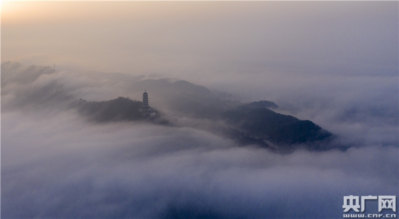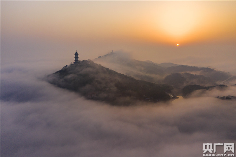2月22日,江西省九江市都昌縣出現(xiàn)大霧天氣,樓宇、山巒、寶塔在霧中若隱若現(xiàn),宛如仙境。
