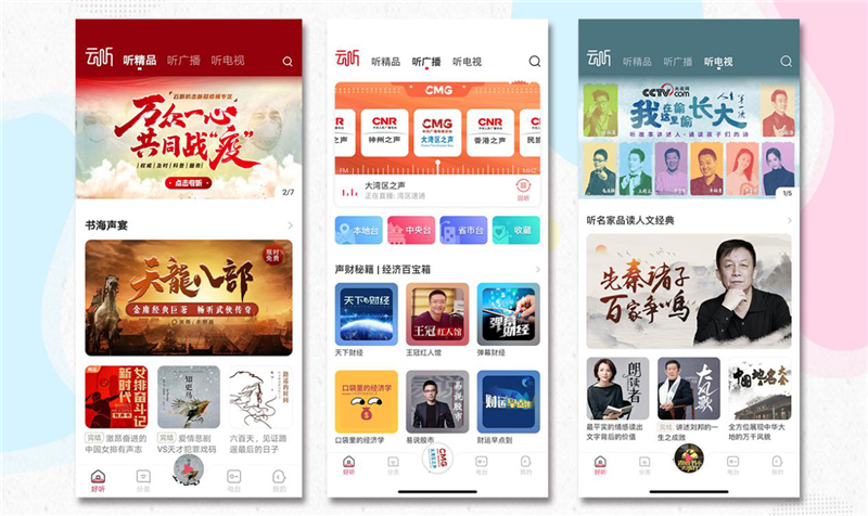 “云聽”除對總臺央廣、國廣的優(yōu)質(zhì)音頻資源進行收錄、分發(fā)以外,還打通總臺5G智能新媒體中臺,對總臺央視視頻內(nèi)容進行音頻化再生產(chǎn),深入開發(fā)總臺播音員、主持人、資深編輯、記者、制作人以及總臺獨家版權資源。
