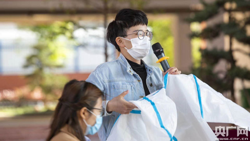 央廣網(wǎng)都昌4月15日消息(記者王一凡 通訊員江建峰 于華亮 李韌)“我們穿著全封閉的防護(hù)服,一天下來衣服完全被浸濕。有一次防護(hù)服意外被劃破,在當(dāng)時(shí)防控物資緊缺的情況下,我用膠帶粘上繼續(xù)投入工作!4月13日,都昌縣援鄂“抗疫戰(zhàn)士”曾焱英向?qū)W生們講述抗疫一線的故事,全場響起熱烈的掌聲。