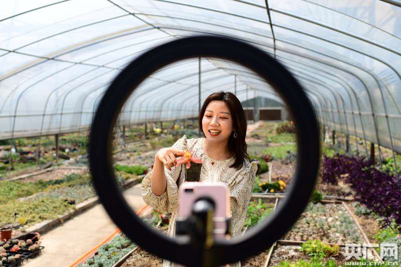 4月25日,柴桑區(qū)港口街鎮(zhèn)花卉基地,花農(nóng)和主播在使用網(wǎng)絡(luò)平臺(tái)直播推銷多肉植物。據(jù)悉,該基地運(yùn)用“線下基地+網(wǎng)絡(luò)直播”相結(jié)合的銷售新渠道,通過網(wǎng)店和直播銷售,平均每天可完成100多個(gè)花卉定單,大大拓寬了產(chǎn)品銷路。(央廣網(wǎng)發(fā) 通訊員楊風(fēng)勝 攝)