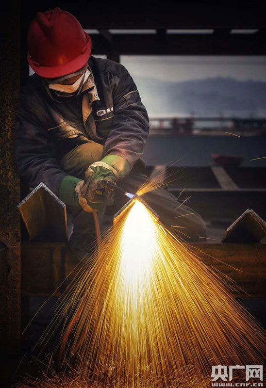 都昌縣造船總廠有限公司的工人正在進(jìn)行切割作業(yè)。(央廣網(wǎng)發(fā) 通訊員傅建斌 攝)