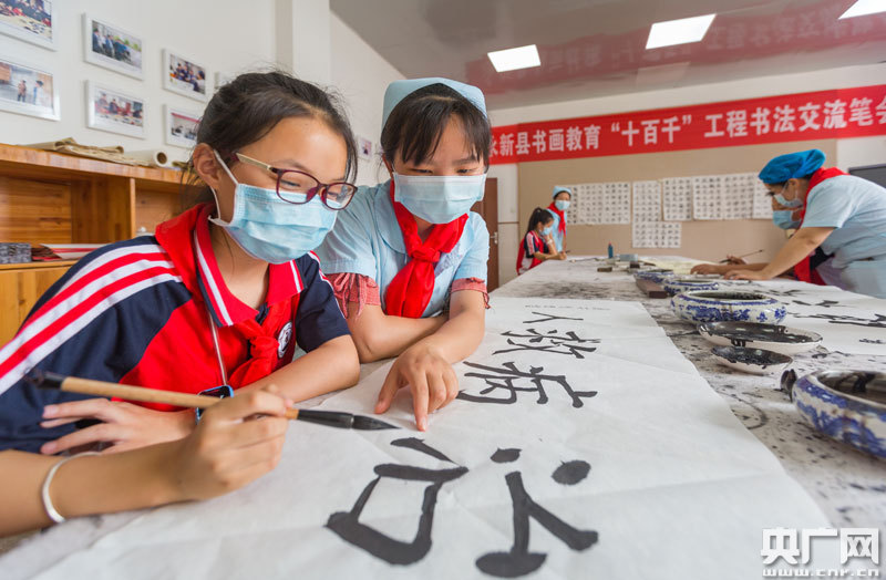 學(xué)生正在創(chuàng)作書法作品(央廣網(wǎng)發(fā) 通訊員 攝)