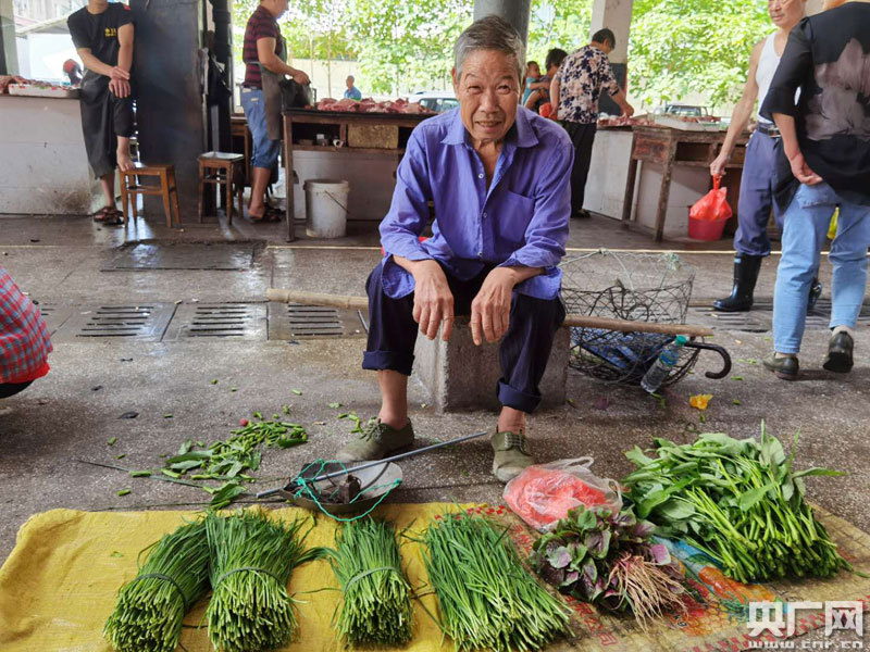 貧困戶萬云明每天堅(jiān)持在集貿(mào)市場(chǎng)賣菜