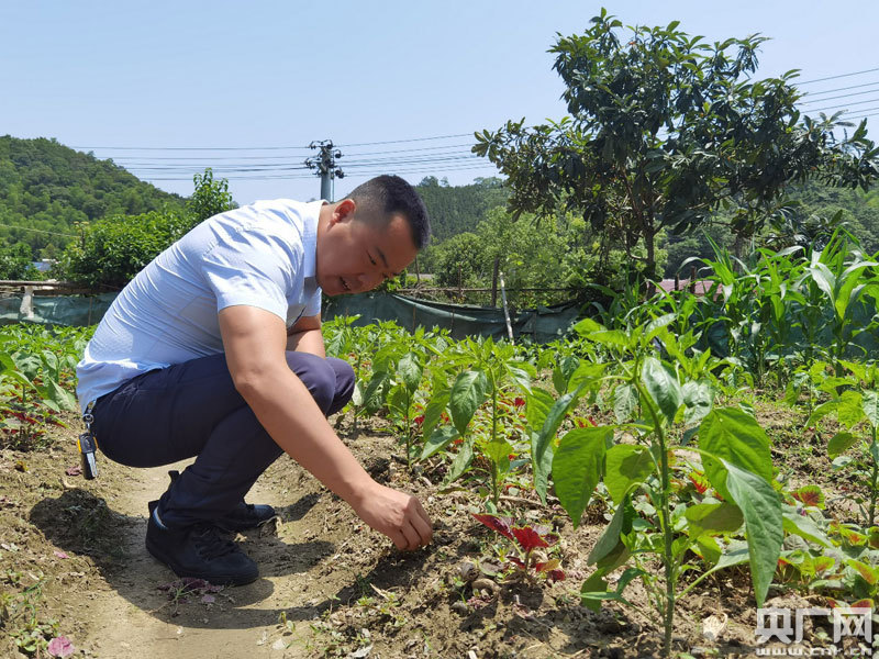 駐村工作隊(duì)員查看萬云明蔬菜長(zhǎng)勢(shì)