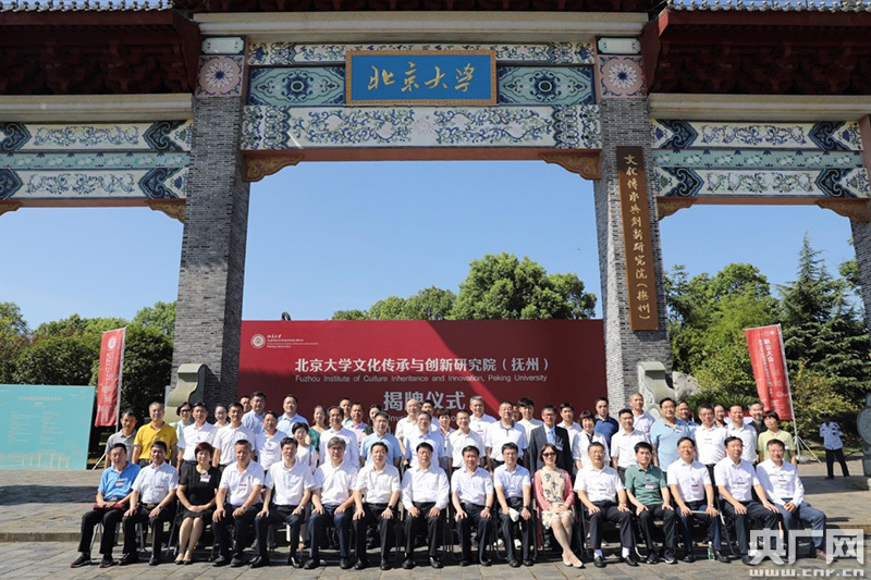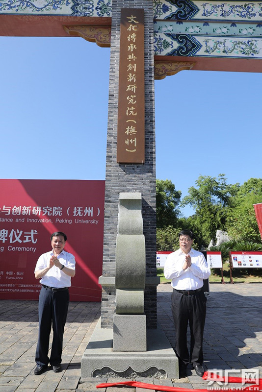 北京大學黨委書記邱水平,江西省政協副主席、撫州市委書記肖毅為研究院揭牌(撫州市委宣傳部 提供)