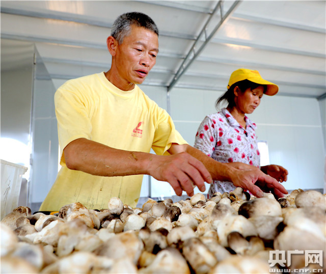 貧困戶正在整理富硒稻草菇(央廣網(wǎng)發(fā) 通訊員尹其奇 攝)