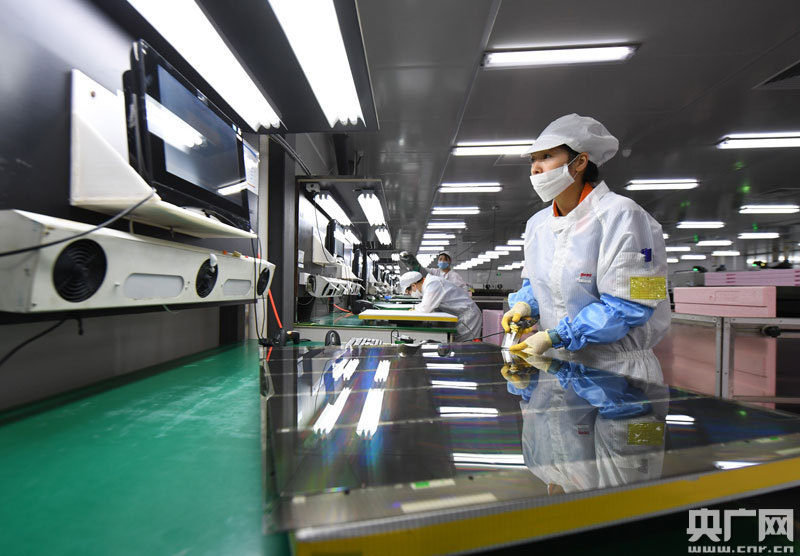 江西沃格光電公司的員工在加工打磨光電玻璃(央廣網(wǎng)發(fā) 通訊員提供)