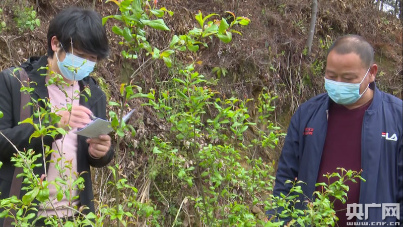 技術(shù)人員現(xiàn)場查看石榴樹長勢情況