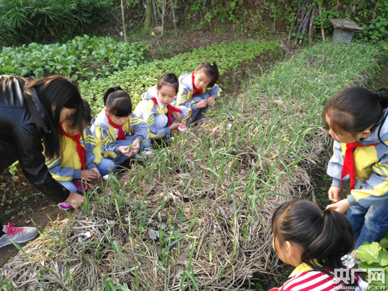 師生查看蒜苗的長勢(央廣網(wǎng)發(fā) 通訊員供圖)