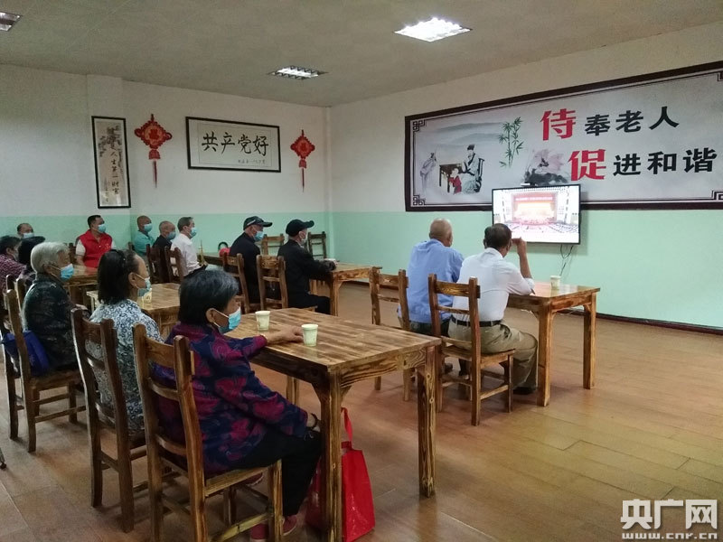 鈐東街道礦建社區(qū)頤養(yǎng)之家老人在集中觀看全國(guó)“兩會(huì)”(央廣網(wǎng)發(fā) 通訊員供圖)