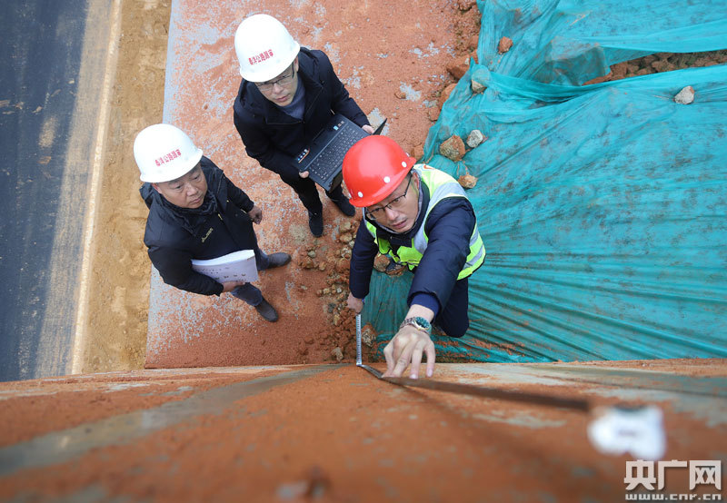 安?h審計(jì)人員在對(duì)泰洋公路綠化工程進(jìn)行跟蹤審計(jì)(央廣網(wǎng)發(fā) 通訊員供圖)