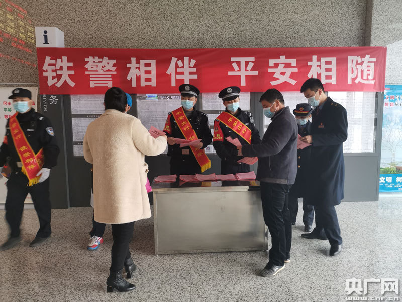 萬安車站派出所民警向旅客開展春運(yùn)安全知識(shí)宣傳(央廣網(wǎng)發(fā) 通訊員供圖)