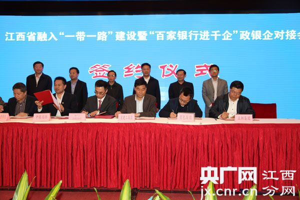 會上舉行了14個(gè)合作項(xiàng)目和戰(zhàn)略合作協(xié)議簽字儀式,分別是:江西走出去企業(yè)戰(zhàn)略合作聯(lián)盟與江泰國際合作聯(lián)盟戰(zhàn)略合作協(xié)議、中國出口信用保險(xiǎn)公司南昌營管部與國家開發(fā)銀行江西省分行戰(zhàn)略合作協(xié)議、中國出口信用保險(xiǎn)公司南昌營管部與中鼎國際建設(shè)集團(tuán)有限公司戰(zhàn)略合作協(xié)議、北京銀行股份有限公司南昌分行與江聯(lián)國際工程有限公司戰(zhàn)略合作協(xié)議。國家開發(fā)銀行江西省分行分別與江西建工集團(tuán)公司、正邦集團(tuán)有限公司、江西中煤建設(shè)集團(tuán)有限公司、江西地質(zhì)工程(集團(tuán))有限公司、江西久盛國際電力工程有限公司、江西有色建設(shè)集團(tuán)有限公司等6家企業(yè)簽署《服務(wù)“一帶一路”國家戰(zhàn)略開發(fā)性金融合作協(xié)議》。中國進(jìn)出口銀行江西省分行與中國江西國際經(jīng)濟(jì)技術(shù)合作公司、江西晶科能源有限公司、江西煌上煌集團(tuán)有限公司等3家企業(yè)簽訂走出去項(xiàng)目貸款協(xié)議,與南昌工業(yè)控股集團(tuán)簽訂戰(zhàn)略合作協(xié)議。