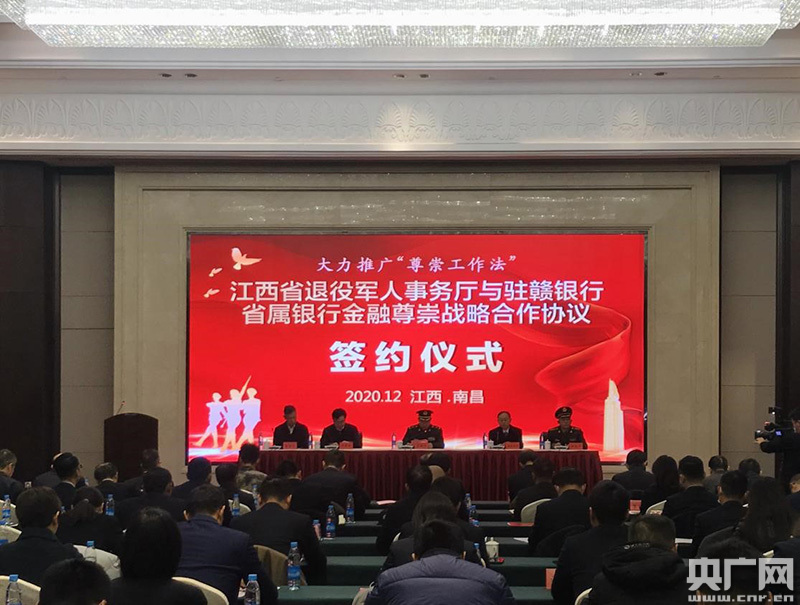 央廣網(wǎng)南昌12月16日消息(記者王一凡 通訊員劉冰倩)12月16日,為落實黨中央、國務(wù)院和江西省委、省政府關(guān)于退役軍人工作決策部署,做好“六穩(wěn)”工作、落實“六!比蝿(wù),進(jìn)一步加強金融對全省退役軍人優(yōu)撫、安置、就業(yè)創(chuàng)業(yè)等領(lǐng)域的支持,政銀協(xié)力助推江西省退役軍人事業(yè)穩(wěn)步發(fā)展,江西省退役軍人事務(wù)廳舉辦金融尊崇戰(zhàn)略合作簽約儀式,興業(yè)銀行南昌分行黨委書記、行長蔣少強,黨委委員、副行長康志榕出席簽約儀式。