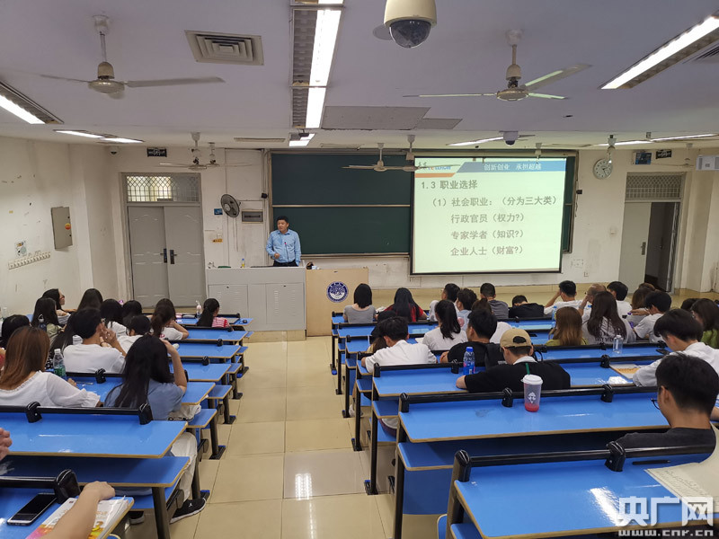 央廣網(wǎng)南昌6月3日消息(記者王一凡 通訊員歐陽潤、李靜、吳恩澤)6月3日下午,在南昌大學(xué)前湖校區(qū)主教樓的11間教室里,不時(shí)傳出陣陣笑聲,11個(gè)學(xué)院1100多位不同專業(yè)的大一學(xué)生正在上著《大學(xué)生職業(yè)發(fā)展與就業(yè)指導(dǎo)》課。與平時(shí)上課不一樣的是,站在講臺上的并非是學(xué)校的老師,而是上市公司總裁、知名企業(yè)高管等南昌大學(xué)校友,課堂上學(xué)生的情緒高漲、氣氛活躍。