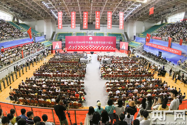 央廣網(wǎng)南昌6月20日消息(記者王一凡 通訊員許航)滿(mǎn)載著豐收的喜悅,滿(mǎn)含著送別的深情。6月19日上午,南昌大學(xué)2019屆畢業(yè)典禮暨學(xué)位授予儀式在莊嚴(yán)的國(guó)歌聲中拉開(kāi)帷幕。學(xué)校師生、家長(zhǎng)、校友齊聚室內(nèi)體育館,溫情送別11000余名2019屆畢業(yè)生。