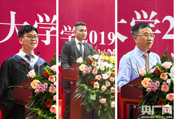 “我要讓身邊的人都知道,在遙遠(yuǎn)的中國(guó),有一個(gè)英雄城,在英雄城里有一個(gè)前湖,那里有我最?lèi)?ài)的南昌大學(xué)。我會(huì)把我在南昌大學(xué)學(xué)到的本領(lǐng)貢獻(xiàn)給我的國(guó)家!眮(lái)自約旦的留學(xué)生畢業(yè)代表王德用漢語(yǔ)表達(dá)感恩之情。