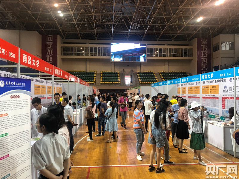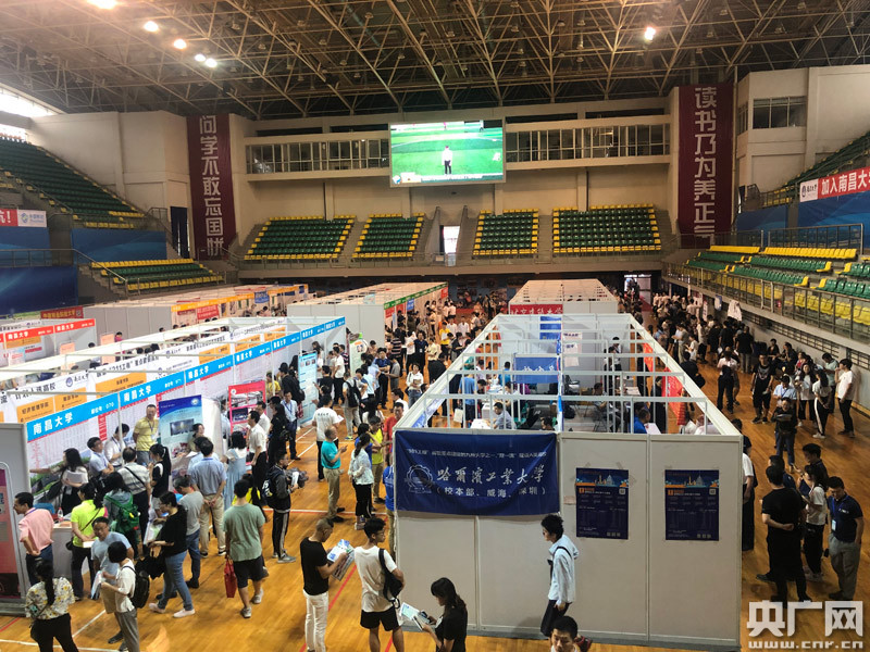 室內(nèi)體育館主屏幕上循環(huán)播放“6月22日央視第一時間南昌大學篇”、“ 6月18日人民網(wǎng)打卡:我的大學--南昌大學直播” 等視頻。共有包括北京大學、浙江大學、復旦大學、武漢大學等116所高水平大學參會,其中“雙一流”高校 80所,“985”高校36所,教育部直屬及211院校75所,讓考生家長一站式解決高招過程中的棘手難題,受到了考生們和家長們的熱烈歡迎。