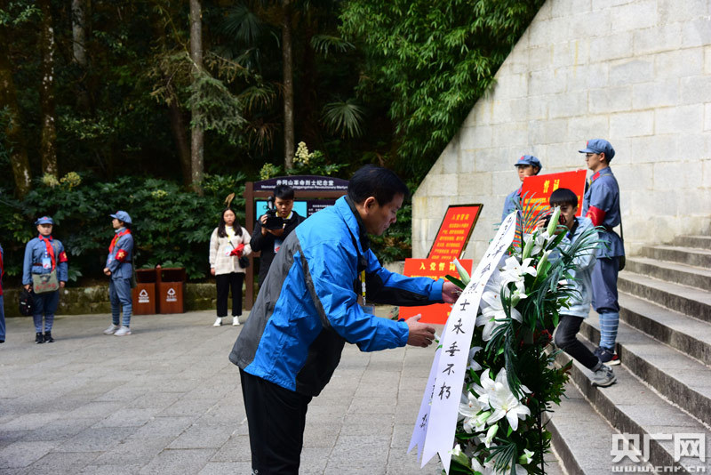 央廣網(wǎng)南昌11月8日消息(記者王一凡 胡斐)11月7日,井岡山革命烈士陵園前,莊嚴(yán)肅穆,260多名高校師生井然有序,向英烈們敬獻(xiàn)花圈,表達(dá)哀思,重溫入黨誓詞,“我自愿加入中國(guó)共產(chǎn)黨……”原來(lái),這是南昌工學(xué)院井岡山·贛南蘇區(qū)愛國(guó)主義實(shí)踐教學(xué)的學(xué)員們,身穿紅軍服、頭戴八角帽來(lái)到井岡山的第一堂“思政課”。