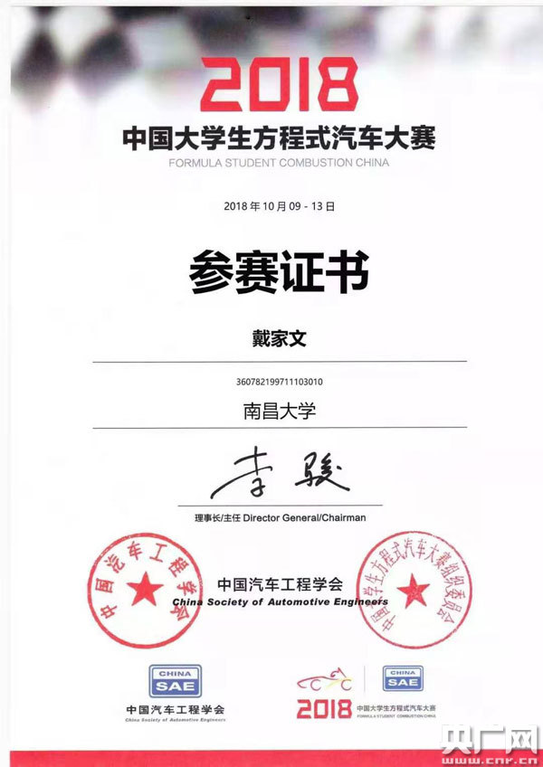 追夢道路始于興趣。高中階段,戴家文便對未來發(fā)展有了清晰的方向。喜好汽車的他,在填報志愿時尤為大膽地只報了機(jī)械類專業(yè)。在大學(xué)四年里,他加入了我校的致骕方程式賽車隊,積極參加各種比賽,如中國大學(xué)生方程式汽車大賽、全國教育機(jī)器人大賽、江西省無碳小車比賽,參與雙創(chuàng)項目,申請實用新型專利,可謂碩果累累。