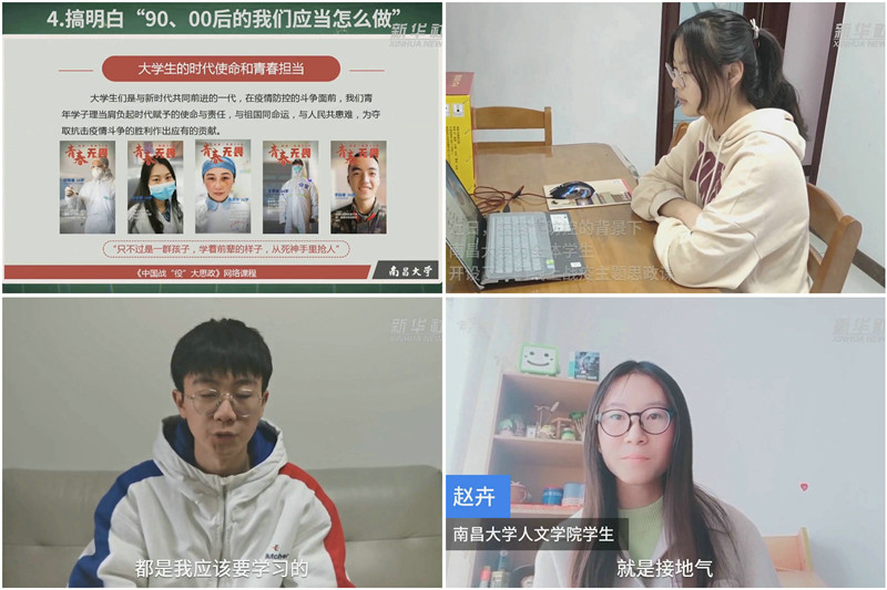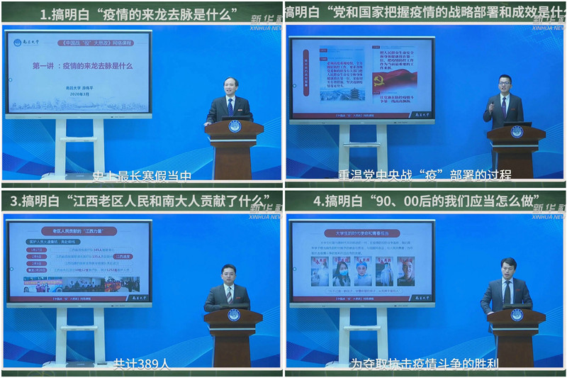 南昌大學(xué)著眼疫情防控背景下的網(wǎng)絡(luò)線上教學(xué)特點(diǎn),根據(jù)教育部黨組印發(fā)的《教育系統(tǒng)關(guān)于學(xué)習(xí)宣傳貫徹落實(shí)<新時(shí)代愛(ài)國(guó)主義教育實(shí)施綱要>的工作方案》文件要求,結(jié)合“90后”“00后”青年學(xué)生實(shí)際,在本學(xué)期內(nèi)統(tǒng)一開(kāi)設(shè)主題思政課,通過(guò)線上學(xué)習(xí),引導(dǎo)學(xué)生充分認(rèn)識(shí)中國(guó)特色社會(huì)主義制度優(yōu)勢(shì),激發(fā)新時(shí)代愛(ài)國(guó)主義熱情,用當(dāng)前疫情防控中涌現(xiàn)出的大愛(ài)情懷、家國(guó)擔(dān)當(dāng)、英雄精神、優(yōu)良品質(zhì)引導(dǎo)學(xué)生不斷堅(jiān)定愛(ài)國(guó)力行的使命責(zé)任,全面提升學(xué)生科學(xué)素養(yǎng)和人文情懷。