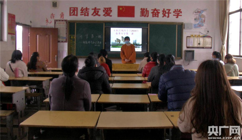 永新縣城西小學(xué)進(jìn)行復(fù)學(xué)演練,一名教師正在“上課”。