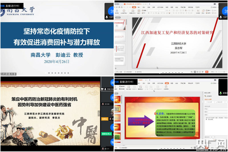 央廣網(wǎng)南昌4月28日消息(記者胡斐 通訊員羅海平)4月26日下午,南昌大學(xué)中國中部經(jīng)濟(jì)社會(huì)發(fā)展研究中心、經(jīng)濟(jì)管理學(xué)院聯(lián)合主辦網(wǎng)絡(luò)研討會(huì),邀請(qǐng)省內(nèi)專家學(xué)者圍繞江西省應(yīng)對(duì)疫情影響,促進(jìn)經(jīng)濟(jì)復(fù)蘇進(jìn)行政策研討。副校長、中國中部經(jīng)濟(jì)社會(huì)發(fā)展研究中心主任劉耀彬到會(huì)致辭。