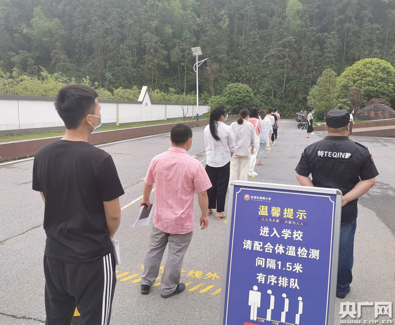 “進(jìn)入學(xué)校,請配合體溫檢查,間隔1.5米有序排隊。”耳邊時刻響起的廣播提醒,順著地上的黃色箭頭小標(biāo)示,晨曦小學(xué)校門外排起了小長龍。