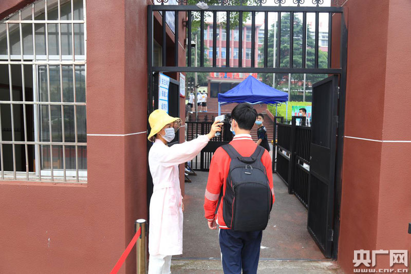 央廣網(wǎng)安源5月11日消息(記者王一凡 通訊員鄔斌 熊超)“請同學(xué)們迅速通過,不用停留……這位同學(xué),請你摘下帽子重新測溫……這位同學(xué)體溫異常,請你到老師這兒來再測一下體溫!痹缟7:30,萍中附屬學(xué)校校門前學(xué)生已經(jīng)陸續(xù)到達,在學(xué)校老師的維護下,校門口沒有任何車輛滯留,學(xué)生們按導(dǎo)引繩依次排隊進入,校門有專人負責(zé)測體溫和行李消毒,所有入校學(xué)生沒有絲毫滯留現(xiàn)象。