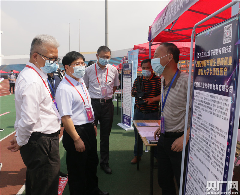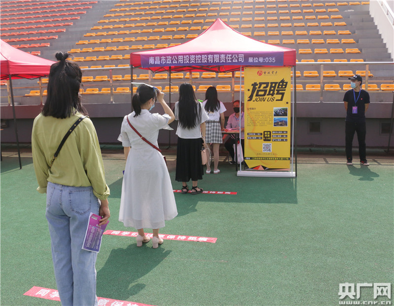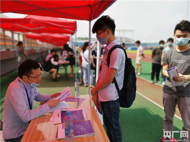 央廣網(wǎng)南昌5月23日消息(記者胡斐 通訊員吳丹 歐陽潤 李靜)“今年要優(yōu)先穩(wěn)就業(yè)保民生”“高校和屬地政府都要提供不斷線的就業(yè)服務(wù)”。為落實(shí)全國兩會精神,5月23日,由江西省教育廳主辦,南昌大學(xué)、南昌市人力資源和社會保障局承辦的江西省2020屆畢業(yè)生留贛就業(yè)南昌大學(xué)專場招聘會在南昌大學(xué)前湖校區(qū)室外體育場舉行,共有60家江西企事業(yè)單位參加,提供就業(yè)崗位316個,需求人數(shù)5375人,截止中午12點(diǎn)達(dá)成簽約意向近500人。這是新冠肺炎疫情發(fā)生以來江西舉辦的首場高校線下招聘會,也是貫徹落實(shí)2020年政府工作報告的具體舉措。